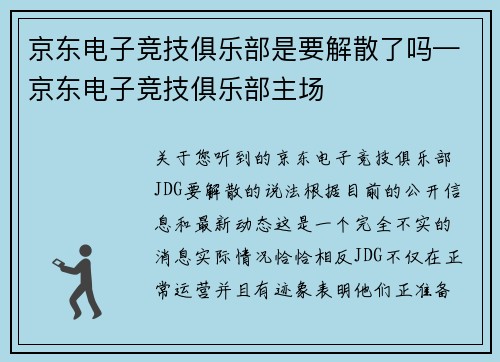 京东电子竞技俱乐部是要解散了吗—京东电子竞技俱乐部主场