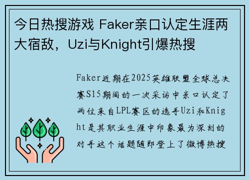 今日热搜游戏 Faker亲口认定生涯两大宿敌,Uzi与Knight引爆热搜